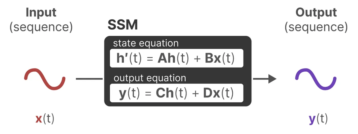 状态空间模型SSM:RNN本质就是一个SSM,SSM 是用于描述这些状态表示并根据某些输入预测其下一个状态可能是什么的模型。一般SSMs包括映射输入序列x(t)、潜在状态表示h(t)、预测输出序列y(t)。