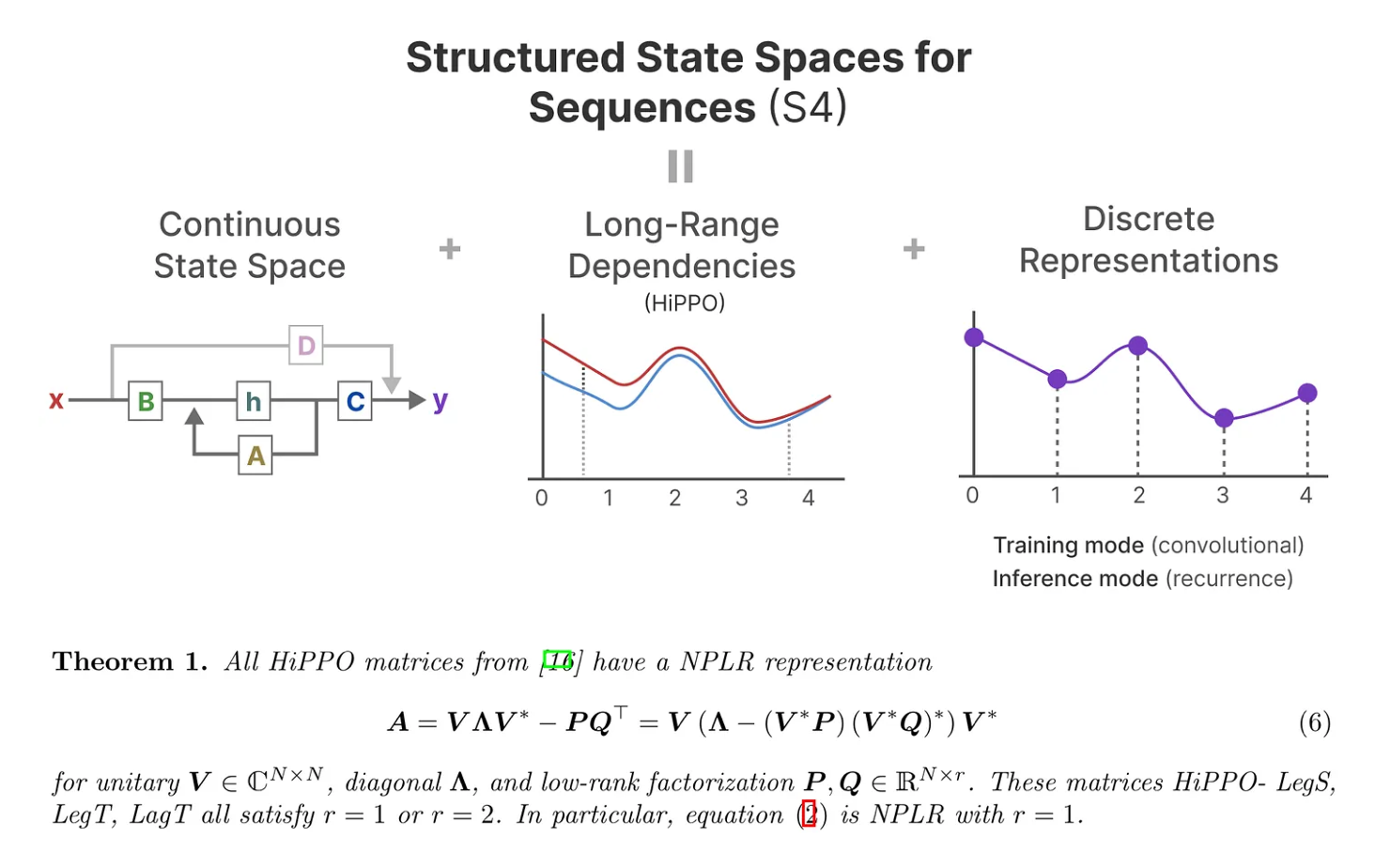首先,在其前身S4中,其有4个参数(),且它们不随输入变化(即与输入无关),这些参数控制了以下两个阶段: