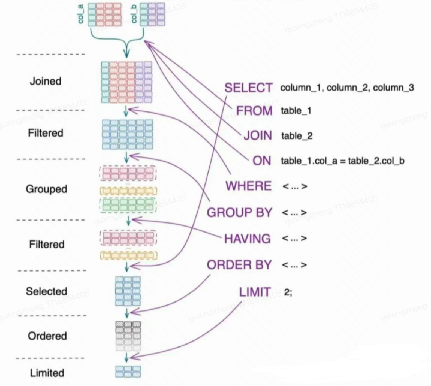 书写顺序:SELECT -> FROM -> JOIN -> ON -> WHERE -> GROUP BY -> HAVING -> UNION -> ORDER BY ->LIMIT
